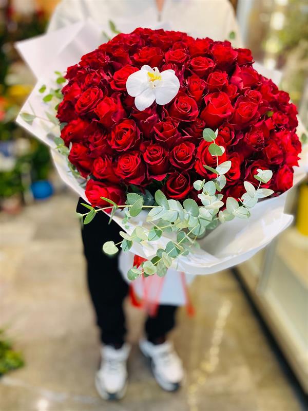 Tutkunun ve sonsuz sevginin simgesi 101 adet kırmızı gül, zarafeti temsil eden beyaz orkide dokunuşu ile bu özel bukette bir araya geliyor. Yoğun ve gösterişli tasarımıyla ilk bakışta etkileyen bu aranjman; aşkı, bağlılığı ve güçlü duyguları ifade etmek isteyenler için hazırlandı. Şık ambalajı ve yeşil detaylarıyla tamamlanan buket, özel günlerde unutulmaz bir iz bırakmak için mükemmel bir seçimdir.
