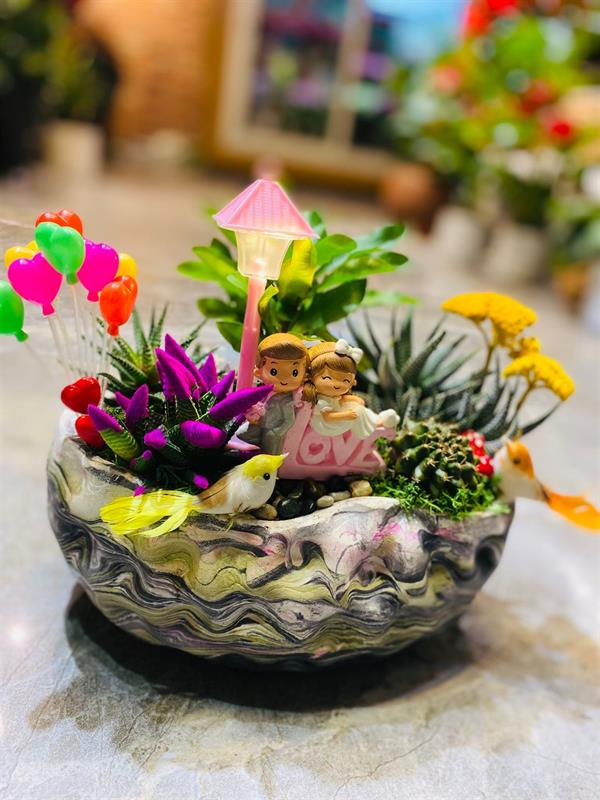Sevginizi küçük ama anlamı büyük bir dünyayla anlatın. “Aşk Bahçesi” teraryum, sevgi temalı figürleri, canlı sukulent ve kaktüsler, renkli detaylar ve dekoratif ışık dokunuşuyla romantik bir atmosfer sunar. Doğal taşlar, minik kuş figürleri ve kalp temasıyla hazırlanan bu özel tasarım; sevgiliye, yıl dönümüne, doğum gününe veya “seni seviyorum” demenin en zarif yollarından biridir.