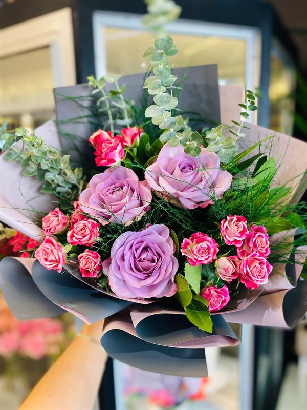 Lila güllerin zarafeti ve pembe mini güllerin romantik enerjisiyle hazırlanan Aşkın Lila Dokunuşu, sevdiğinize duygularınızı en şık şekilde ifade etmeniz için tasarlandı. Doğal yeşillikler ve modern ambalaj detaylarıyla tamamlanan bu özel buket, aşkı, hayranlığı ve içten sevgiyi simgeler.