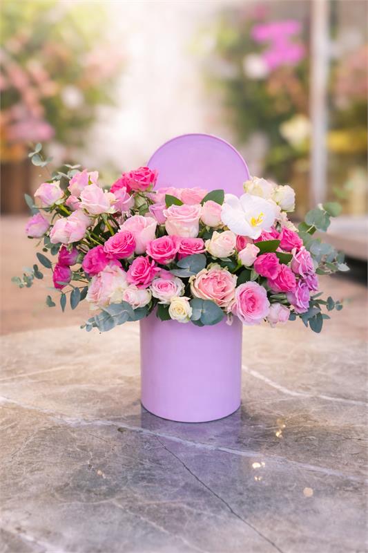 Pembe tonların zarafetini bir araya getiren Pembe Rüya Kutu Aranjman, romantik ve şık bir hediye seçeneğidir. Özenle seçilmiş pembe ve beyaz güller, doğal yeşillikler eşliğinde modern silindir kutu içinde hazırlanmıştır. Sevgiliye, doğum gününe, yıl dönümüne ya da içten bir teşekkür için duyguları en güzel şekilde ifade eder. Uzun süre tazeliğini koruyan bu özel aranjman, bulunduğu ortama zarif bir dokunuş katar.