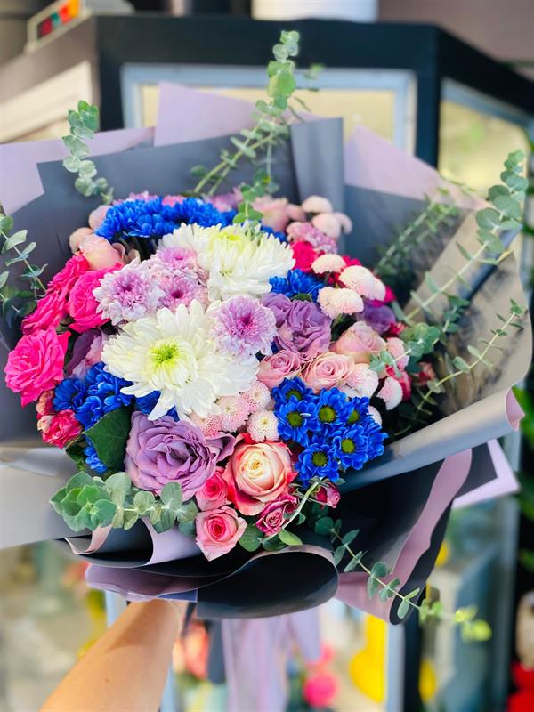 Renklerin Zarafeti Buketi, ithal lila güllerin sofistike duruşunu, çardak güllerin romantik dokunuşunu ve anastasia ile crizantemelerin zarif hacmini bir araya getiren özel bir tasarımdır. Pastel tonların uyumu, bukete hem modern hem de göz alıcı bir karakter kazandırır.
