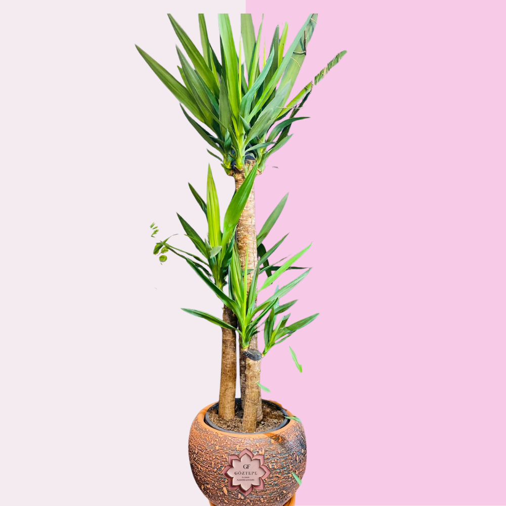 Küp seramikte 3 gövdeli Yukka, modern yaşam alanları için kusursuz bir bitki dekorasyonu.