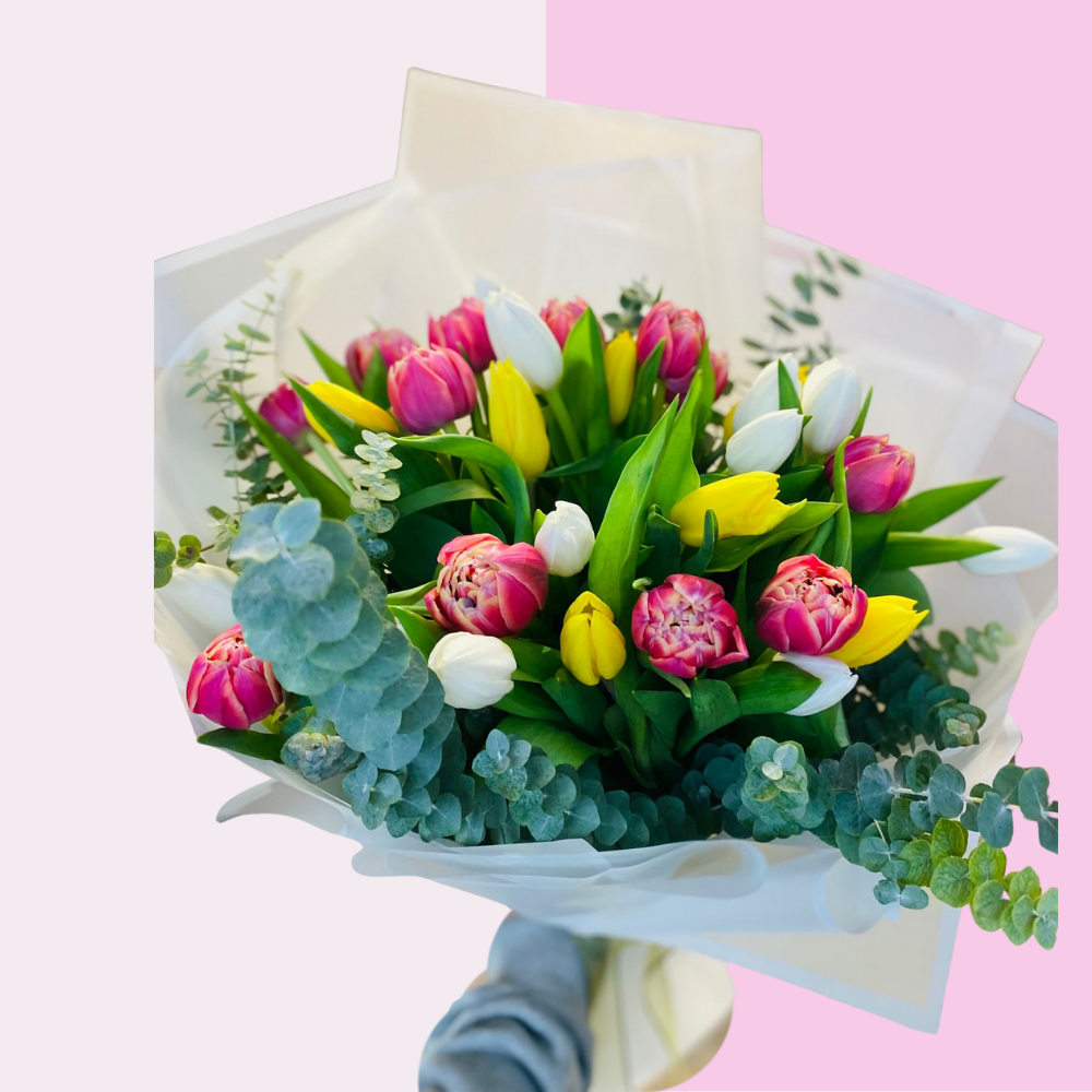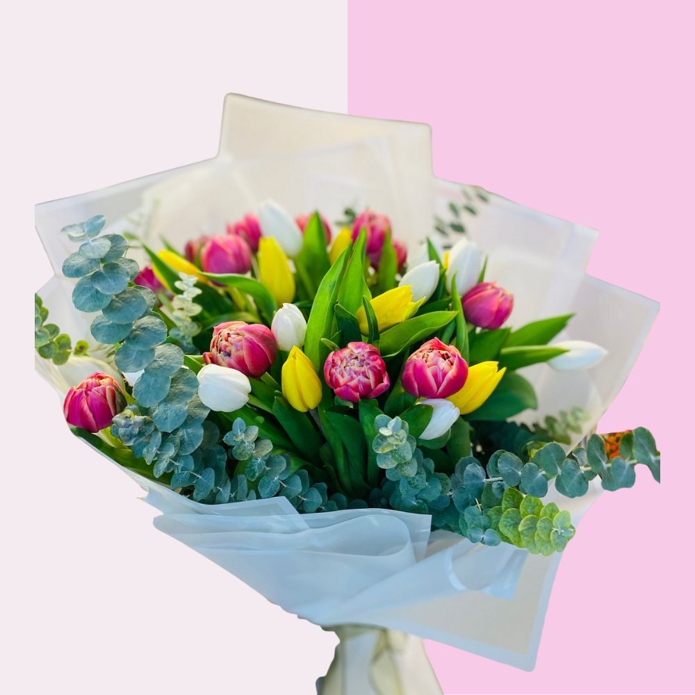İzmir içi aynı gün teslimat sağlıyoruz. Baharın en zarif enerjisini taşıyan 30 adet rengarenk laleden oluşan bu özel buket, sevdiklerinize verebileceğiniz en şık ve en anlamlı hediyelerden biri.